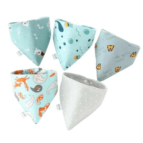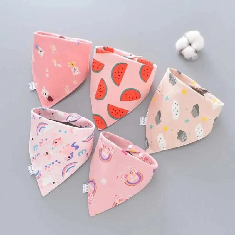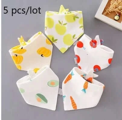 5Pcs Baby Bibs Triangle Scarf Cotton Waterproof Towel, a practical and stylish solution for keeping your baby clean and dry during mealtime or teething.