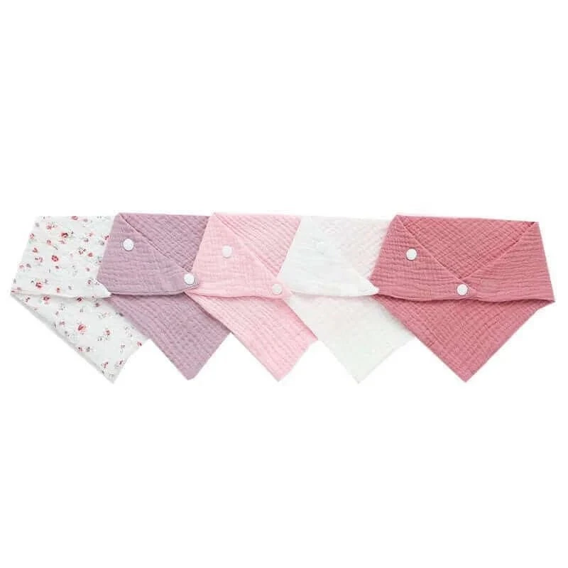 5Pcs Baby Bibs Triangle Scarf Cotton Waterproof Towel, a practical and stylish solution for keeping your baby clean and dry during mealtime or teething.