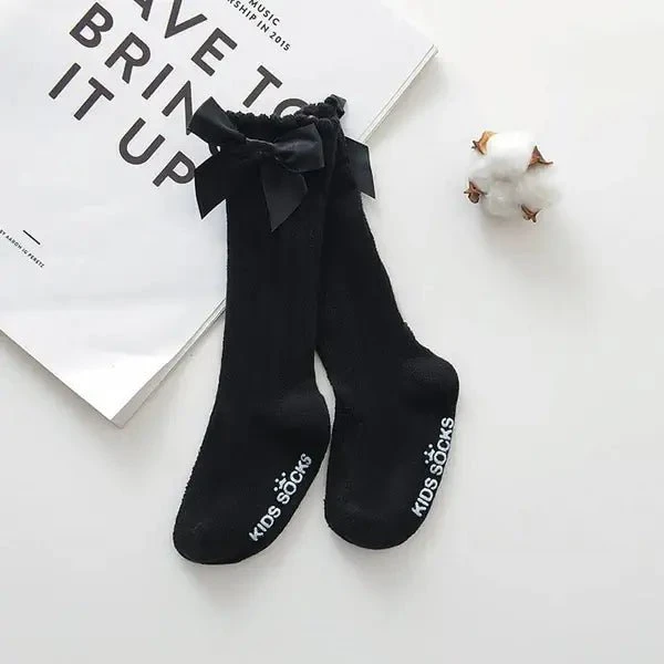 Elevate Your Little One’s Style with Our Adorable Ruffled Bow Knee High Stockings!