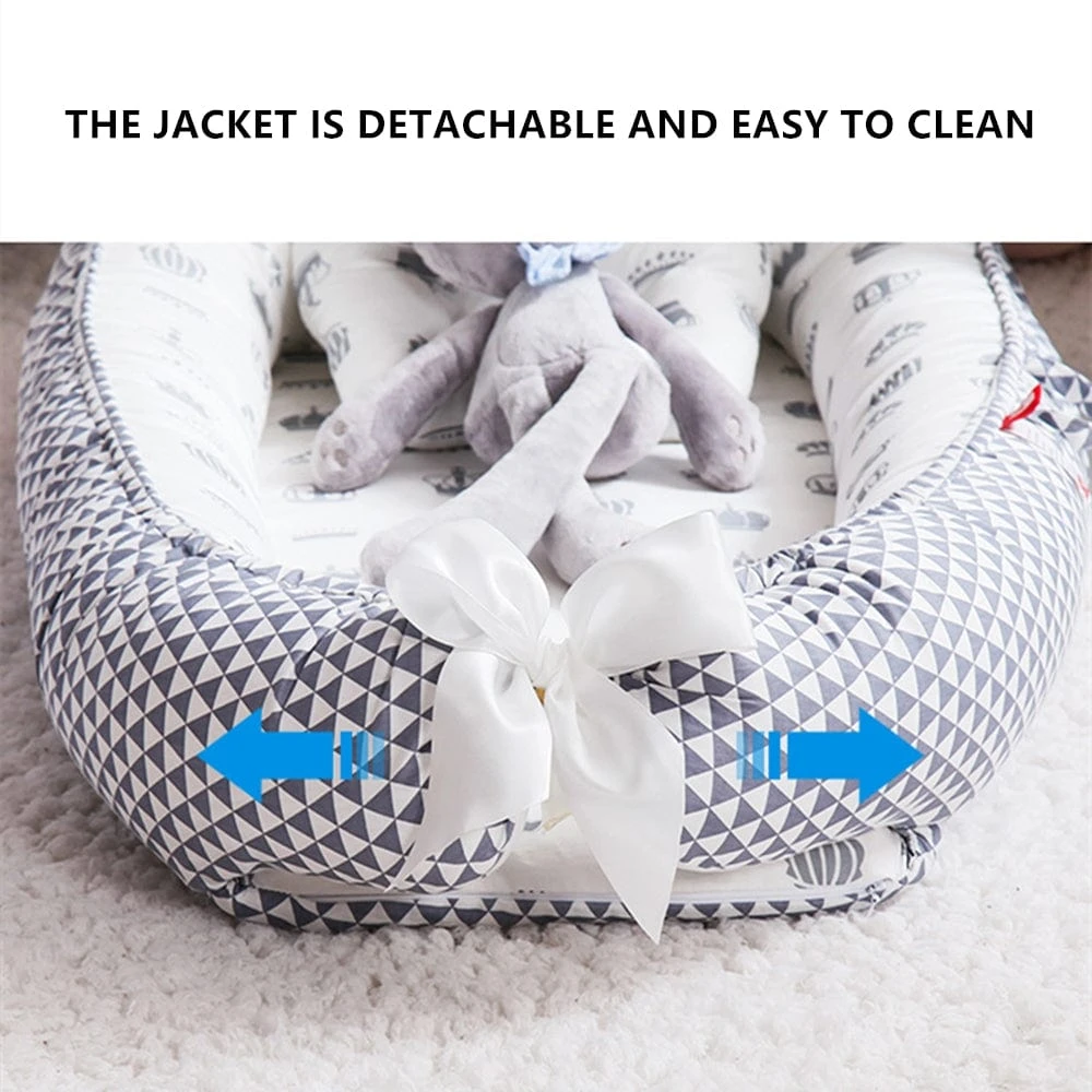 Easy to Carry & Wash: This portable baby nest bed can be easily folded and packed for travel. It features a detachable cover with a concealed zipper for easy disassembly and washing.