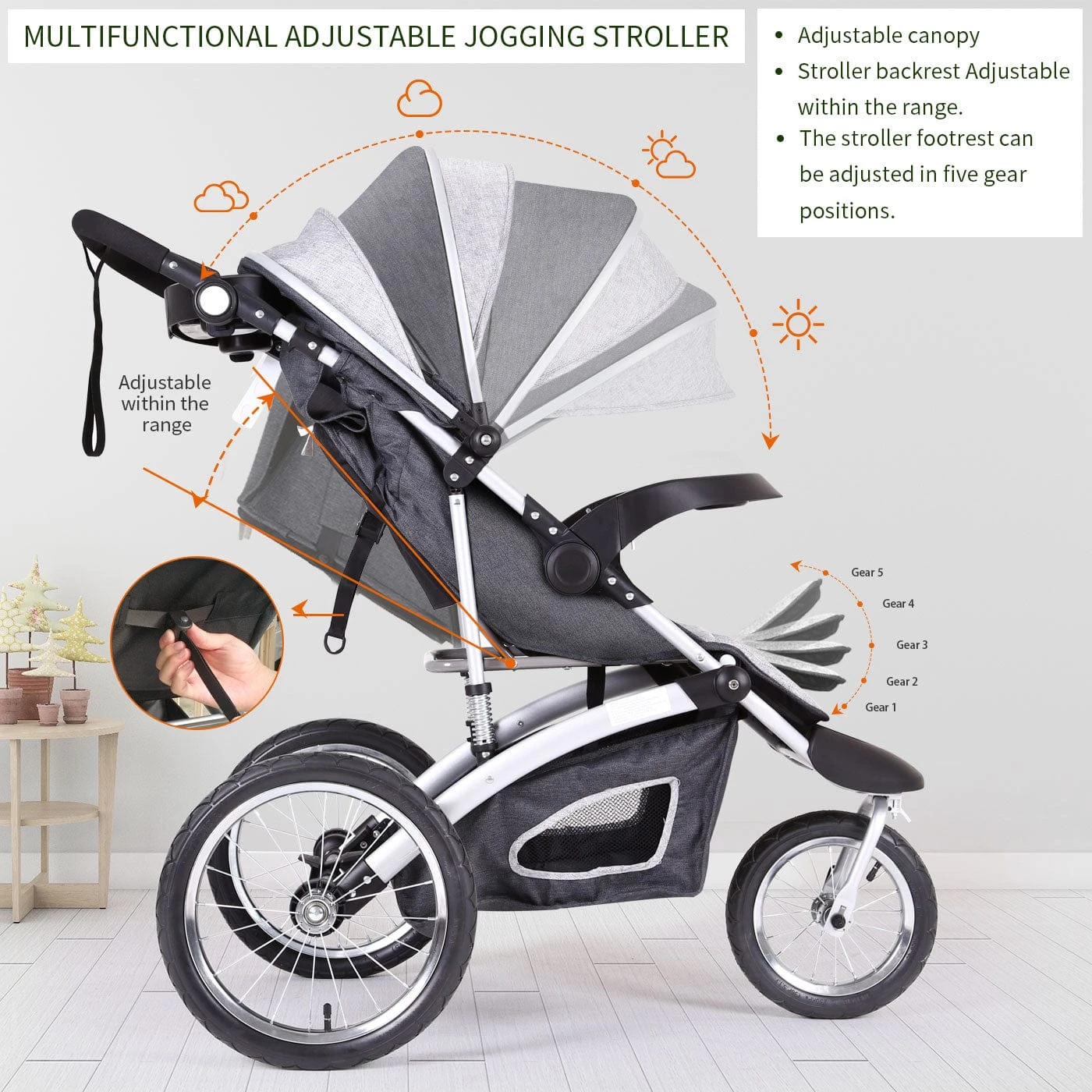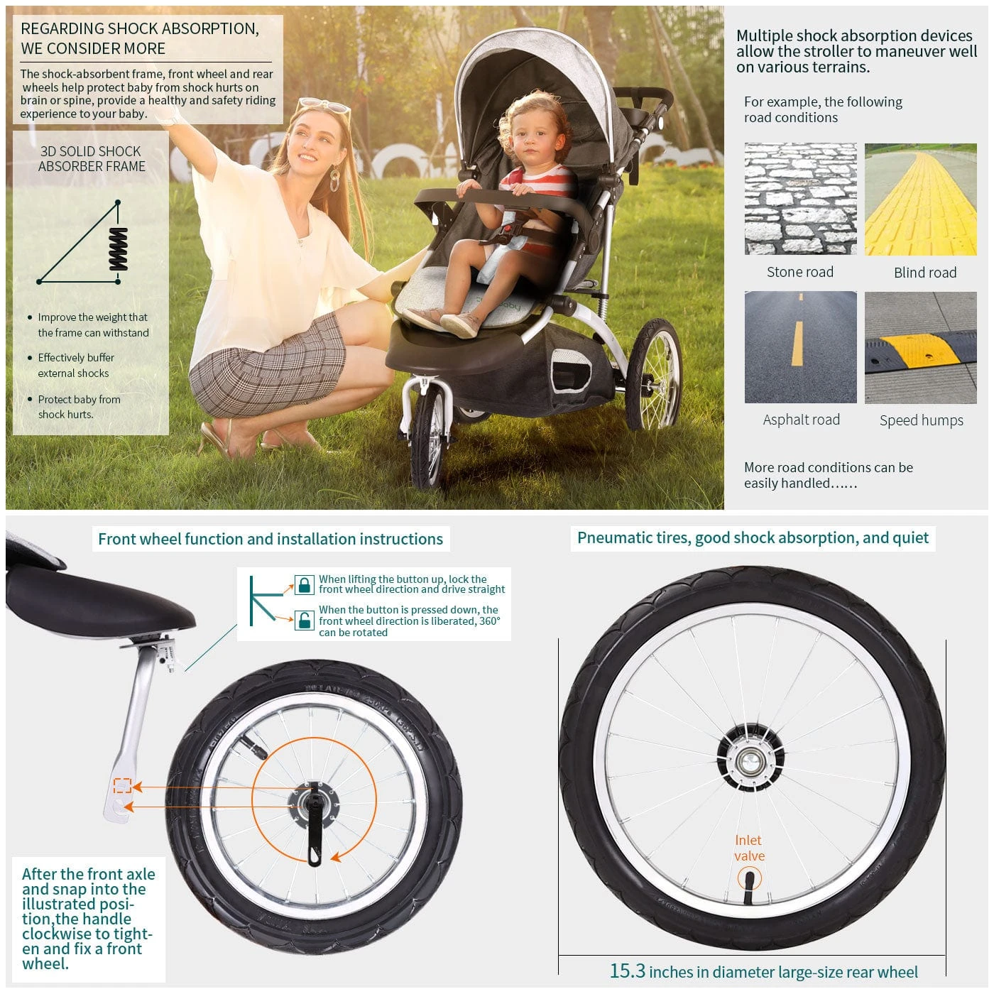 Single Push Break: The Fun&Run Jogging Baby Stroller is having a single push breaking system which is really a fun when you want to enjoy quality time with your cute little one.
