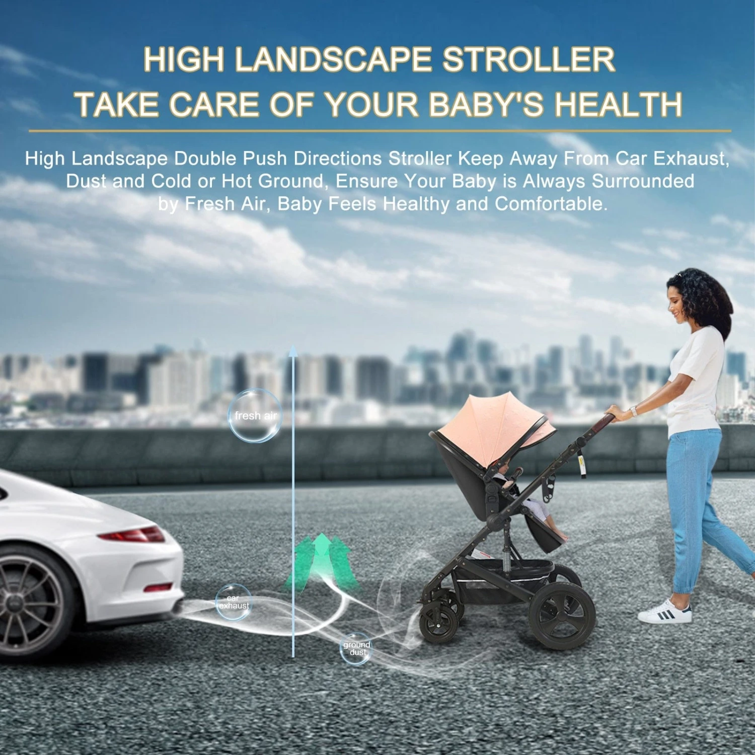 High landscape double push directions stroller keeps away from car exhaust and cold or hot ground, ensuring your baby is always surrounded by fresh air. Our high-quality baby stroller suits for newborns, infants, and toddlers, accompany your baby to grow up healthily. It’s a perfect gift for your baby.