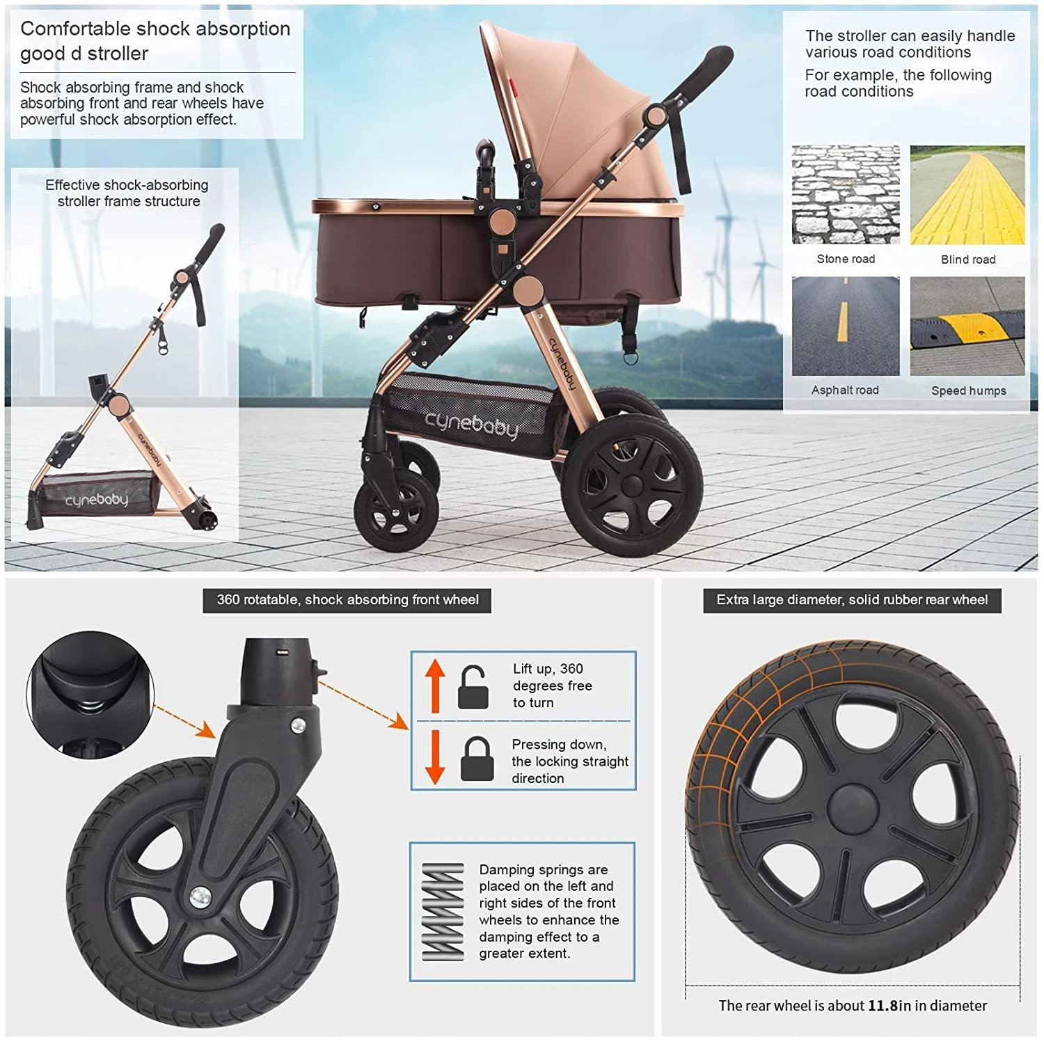 - Heavy-Duty Material: Experience the ultimate stroller design with our all-terrain newborn carriage. Featuring 12-inch axe-shaped rear rubber wheels, this stroller glides effortlessly over any road surface. Our advanced safety features have passed the rigorous American ASTM F833 safety standard test, ensuring the safest ride for your little one. Choose the stroller that prioritizes your child’s safety and comfort – choose ours.