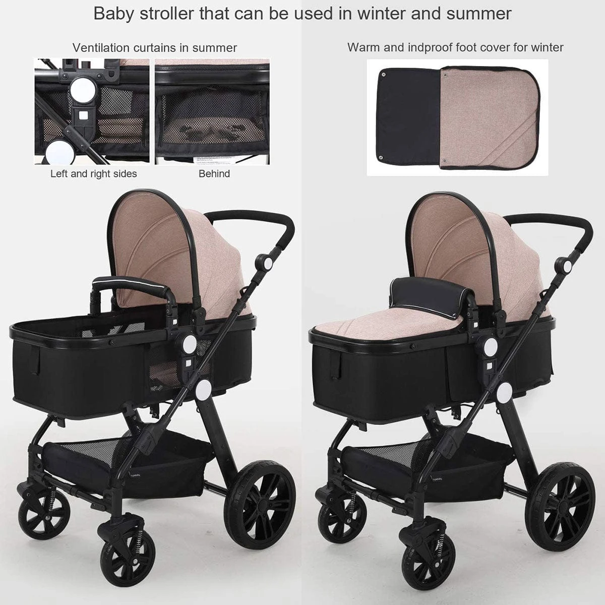 - STROLLER CEILING ADJUSTABLE: CyneBaby High-view Baby Stroller With Reversible Cradle has 4 wheels, which means it can be adjusted. It is also incredibly stable and runs smoothly. Seat cushions are detachable, washable, and have an adjustable foot rest for both sleeping and sitting positions.