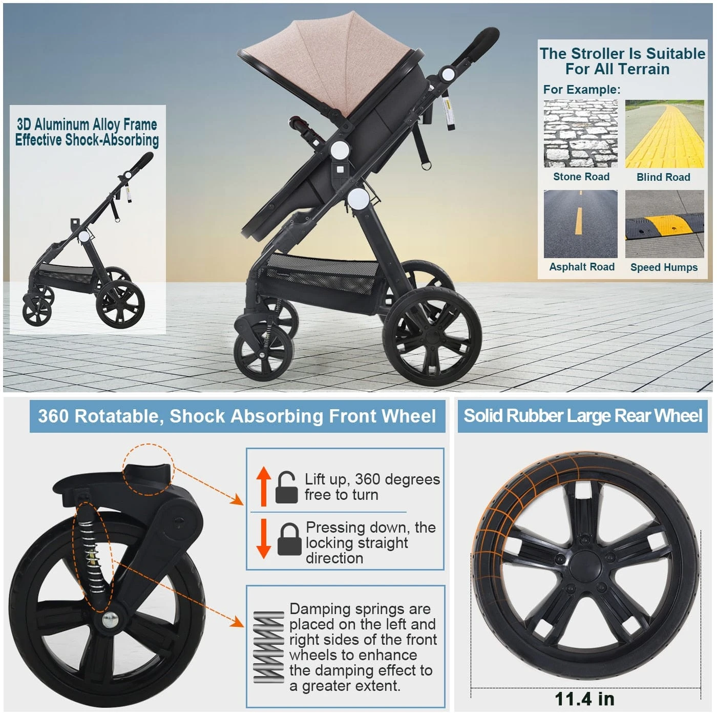- SAFE TO RIDE: Because a safety travel is the most important thing for newborns, this stroller includes a one-foot brake system built in. To ensure that all newborns have a happy and safe riding experience, one-click direction locking and car seat level contain a 5-point harness.