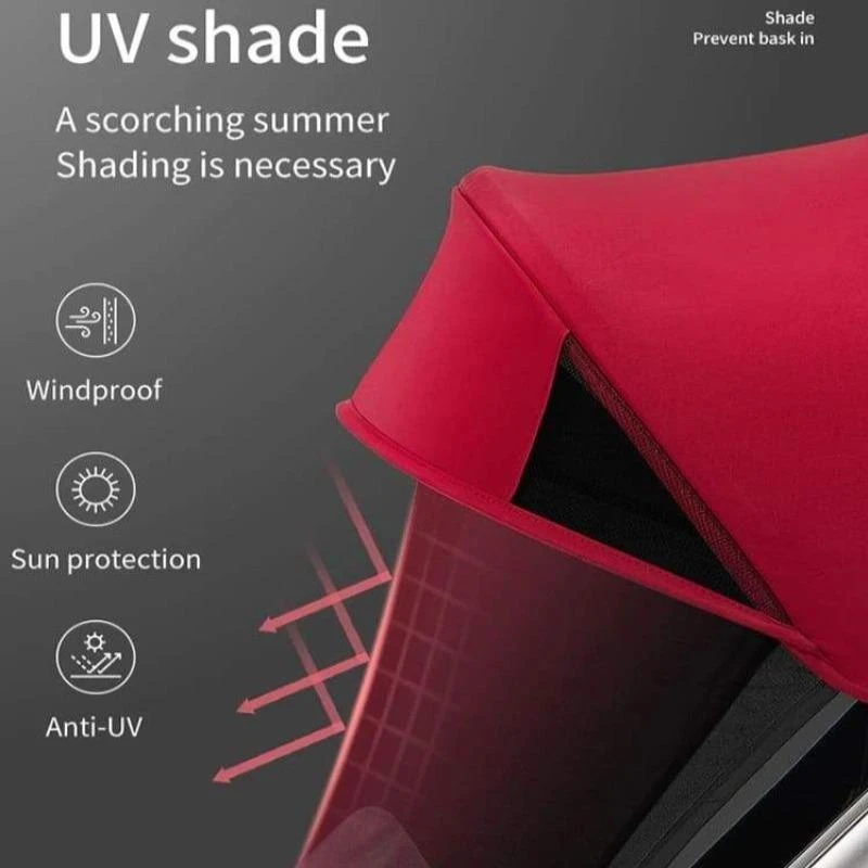 Extended Canopy for Baby Protection– Three-tier, extended canopy for maximum UV protection. A peek-a-boo window 👶 so you can easily keep a watchful eye on your baby.