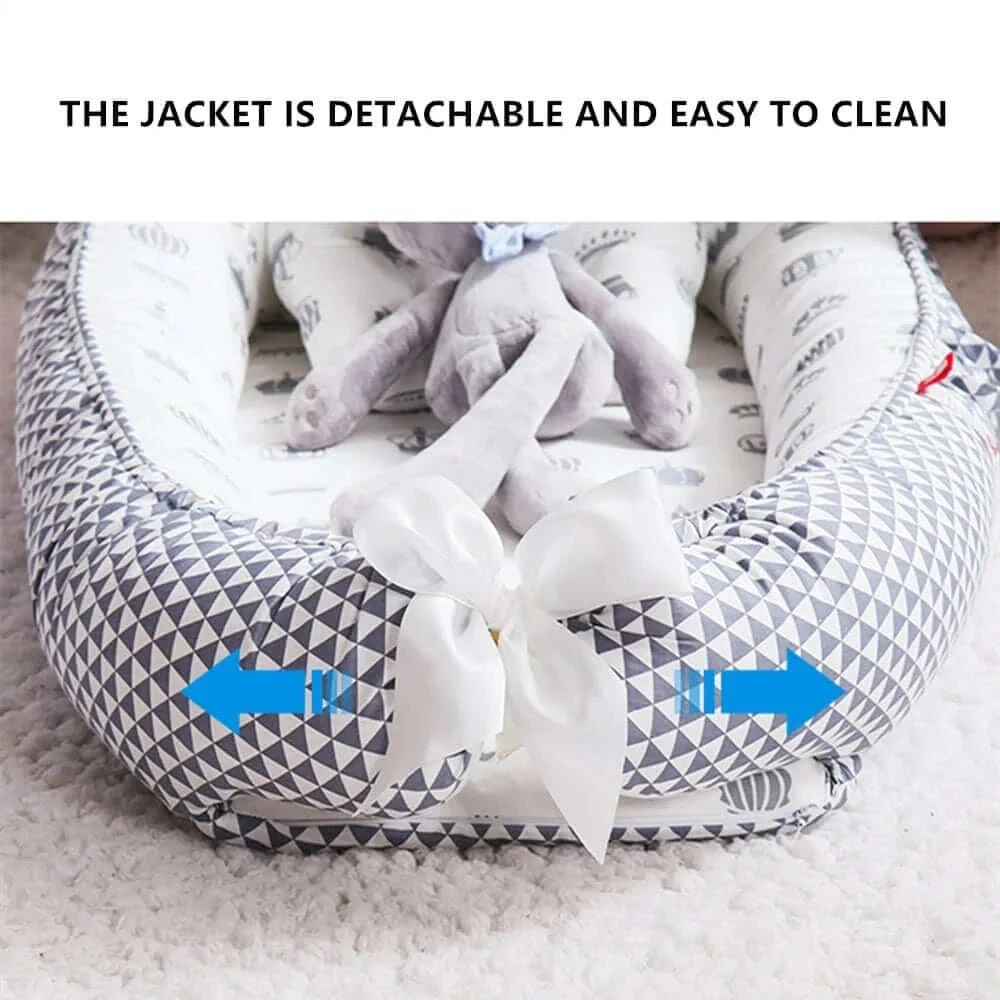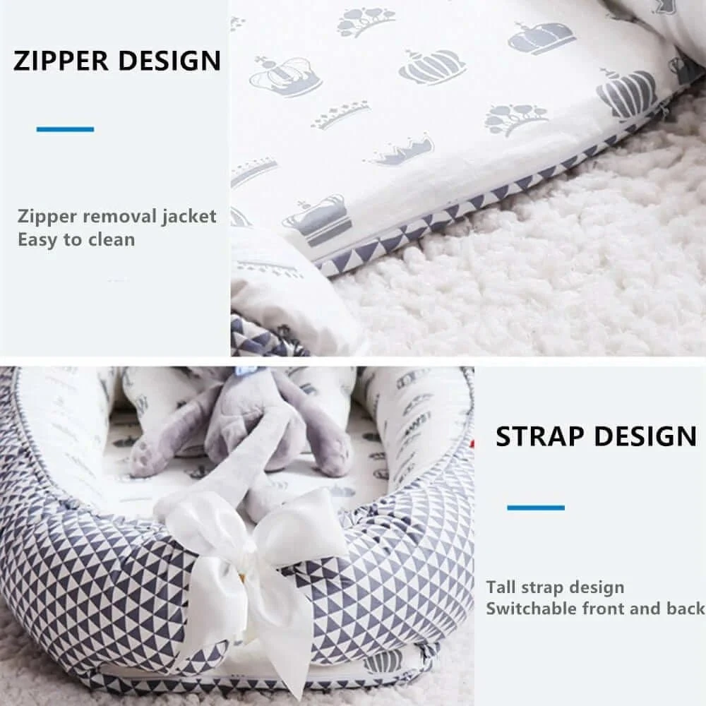 Easily To Carry & Wash: This portable baby nest bed is easy to carry around as it can be easily folded and kept in your travelling beg. It is easy to wash as it has cover on the bottom of the baby nest, there is a concealed zipper that can be used to disassemble the cushion and the lounger bumper in the fence for easy washing.