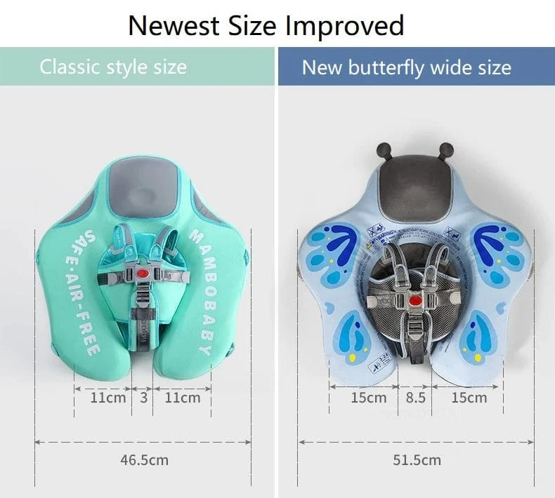 Supports Back and Front Stroke- Infant Floater supports backstroke and breaststroke with different buckle methods. Backstroke Suitable for 3~12 months baby, breaststroke Suitable for 3~24 months baby.