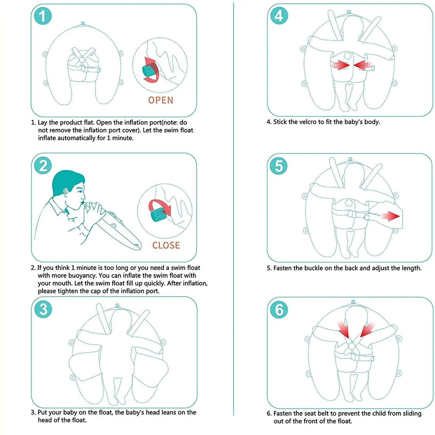 360° Protection- Our MamboBaby™ Self-Inflatable Infant Float is designed to provide 360° protection to the baby. It has safety buckle to provide 5 support points and perfect 40°angle to keep baby balanced and to avoid baby flip over and fall off. You can tight up the buckle as necessary to avoid any slipping and to keep baby safe.