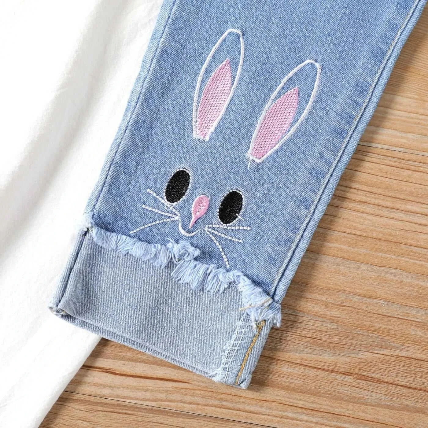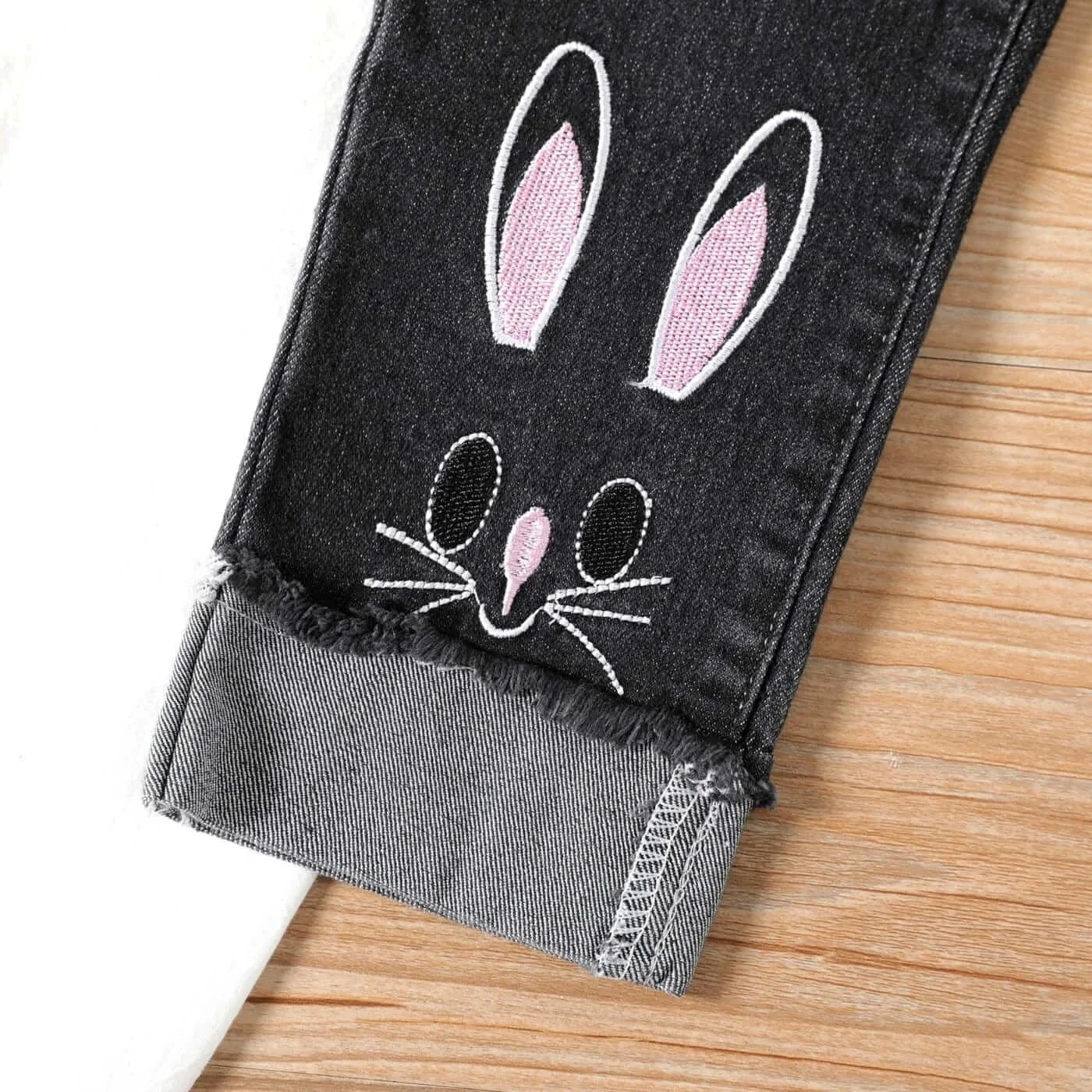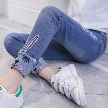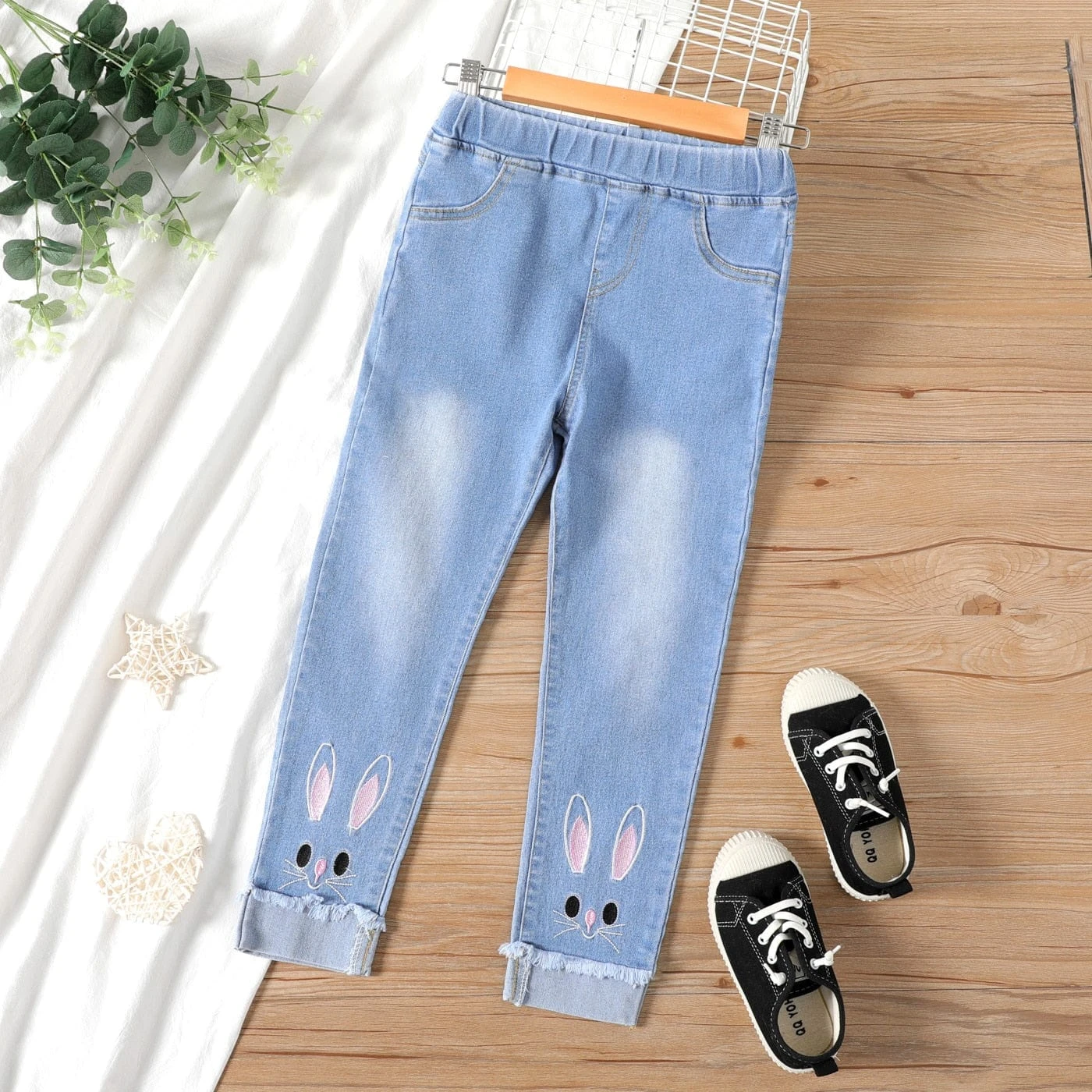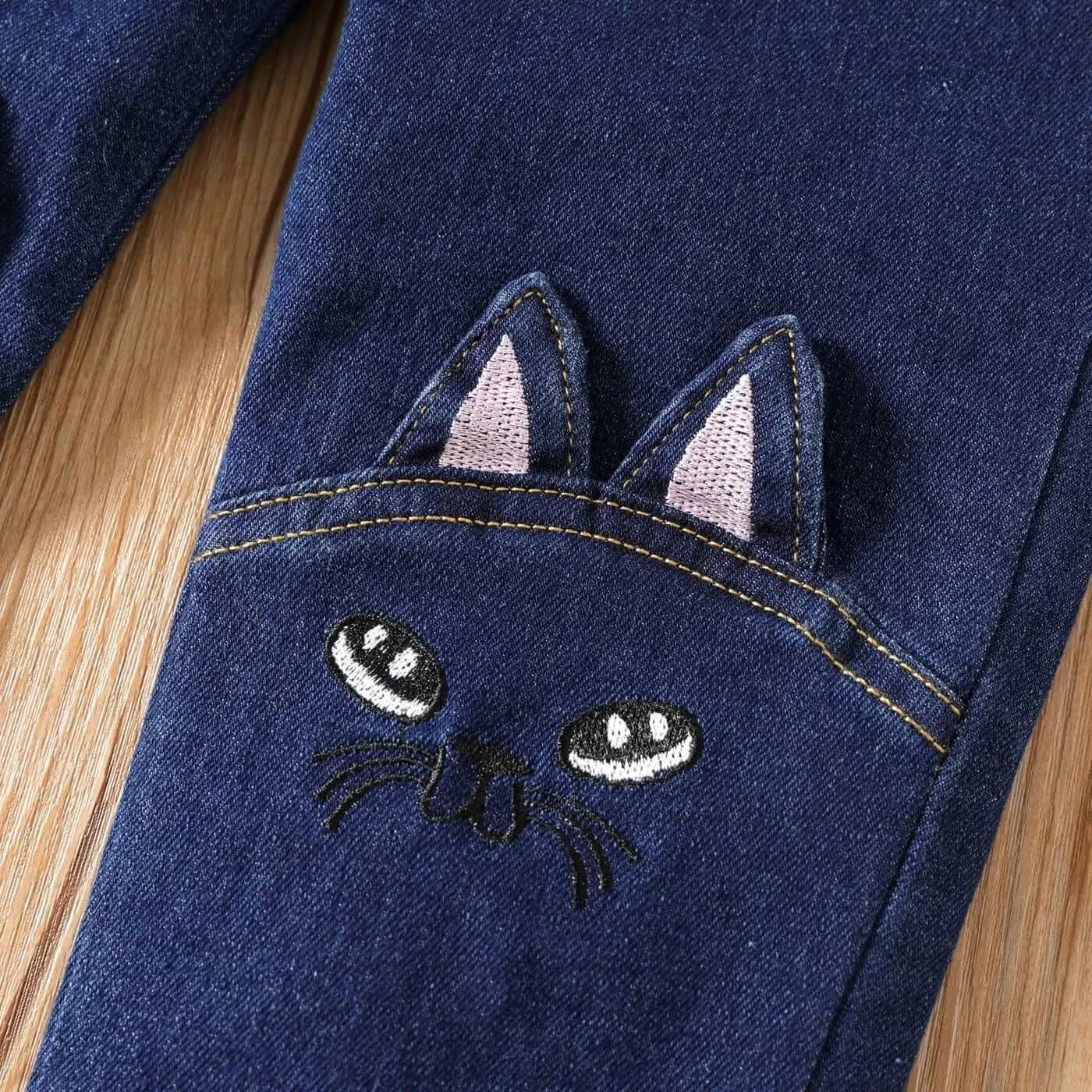 PatPat Casual Jeans for Girls with Cute Cat Design