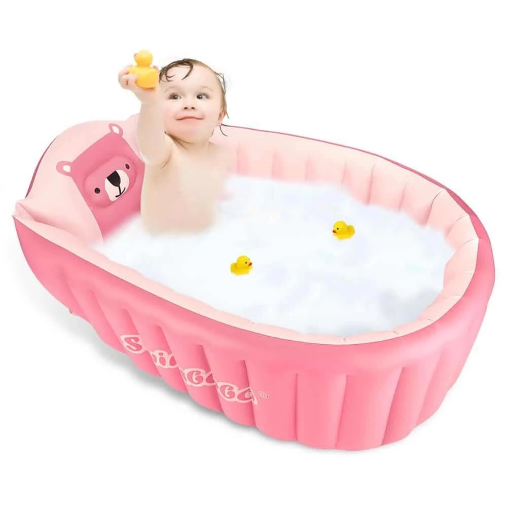 The inflatable baby bathtub is foldable and simple to inflate and deflate.